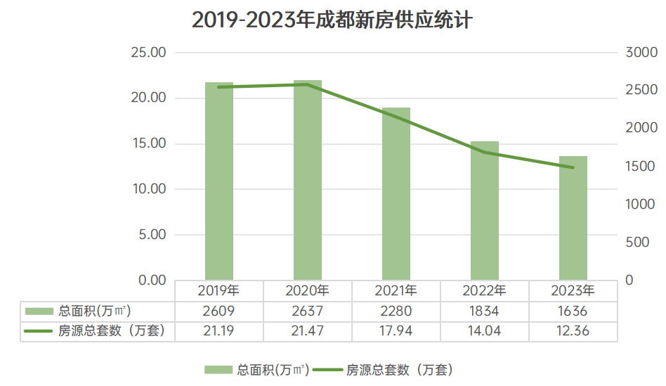 19年-23年12月,成都累计供应了约87万套房源,仅19-21年期间,就新增了约60万套新房房源,而这部分已经开始流入二级市场。