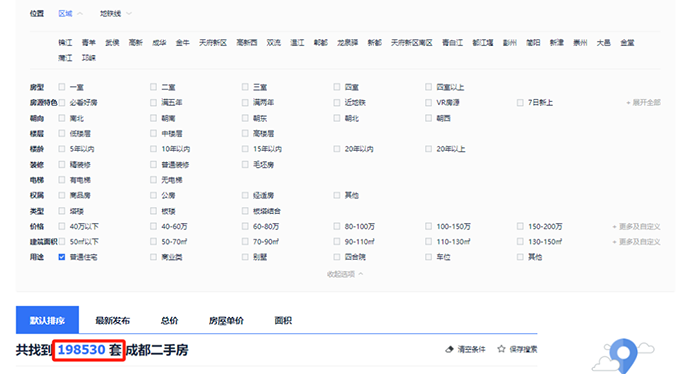 或许有人会说,这其中会包含车位、商业等房源,那我们筛选一下普通住宅,也已经达到了约19.8W套。