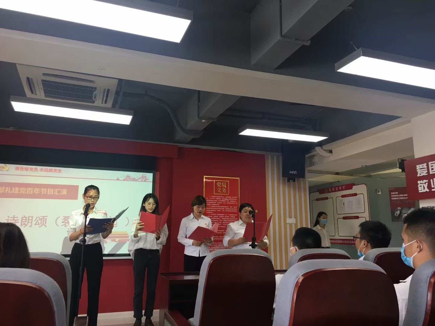 这次观看活动,让我们公司全体员工时刻牢记党给予我们的一切,心怀党恩,无论自己在哪个工作岗位上,都要坚守党的信念,不断付出,让自己闪闪发光!