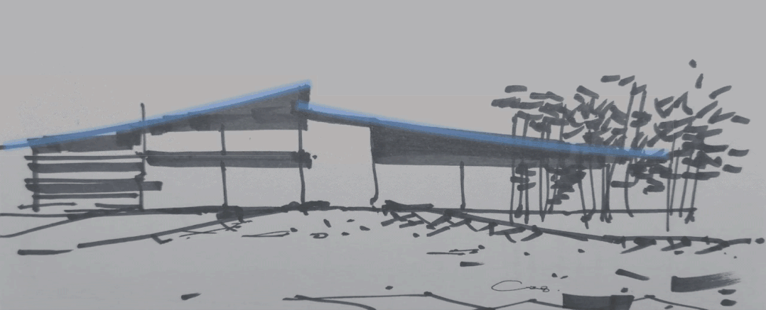 这样的做法消隐了建筑的维护结构,突出承重构件,干净的玻璃面衬底,外侧木格栅环绕,建筑简洁明亮,内外通透,更显纯粹空灵。