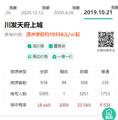 我们还是以川发天府上城为例,2019年新房清水预售价格为10556元/㎡。